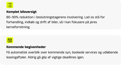 Kort sagt: Vi tager os af bilerne – I bruger tiden på virksomheden.